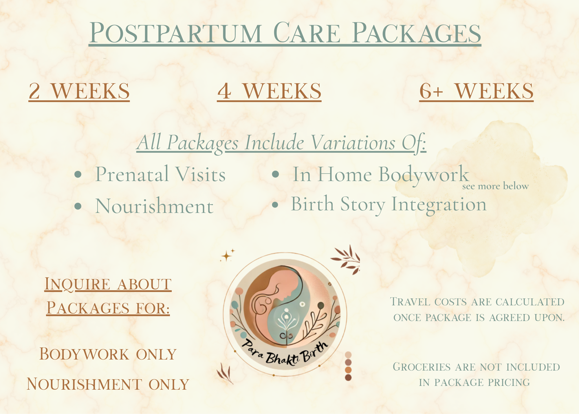 This is care you don’t have to think about. It is care that will offer spaciousness for you to be deeply present with your new precious, earthside baby.